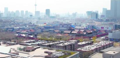 4月19日下午1時許,站在高層的建筑物向下俯瞰,可以看出雖然300多年故宮長高半米,但地勢比起旁邊的其他建筑還是要低一些。 記者 吳懷宇 攝