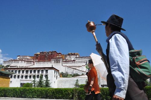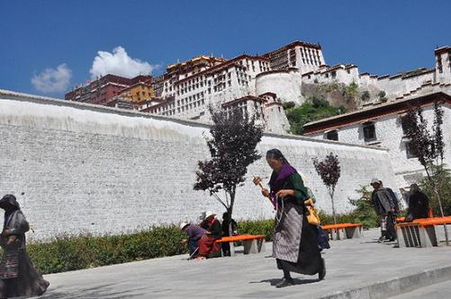 信教群眾在布達拉宮西南面的轉經道上轉經