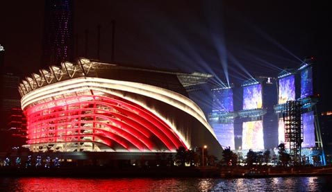 幕式場地夜間照明效果試燈。2010年11月12日,第十六屆廣州亞運會開幕式將在此舉行。